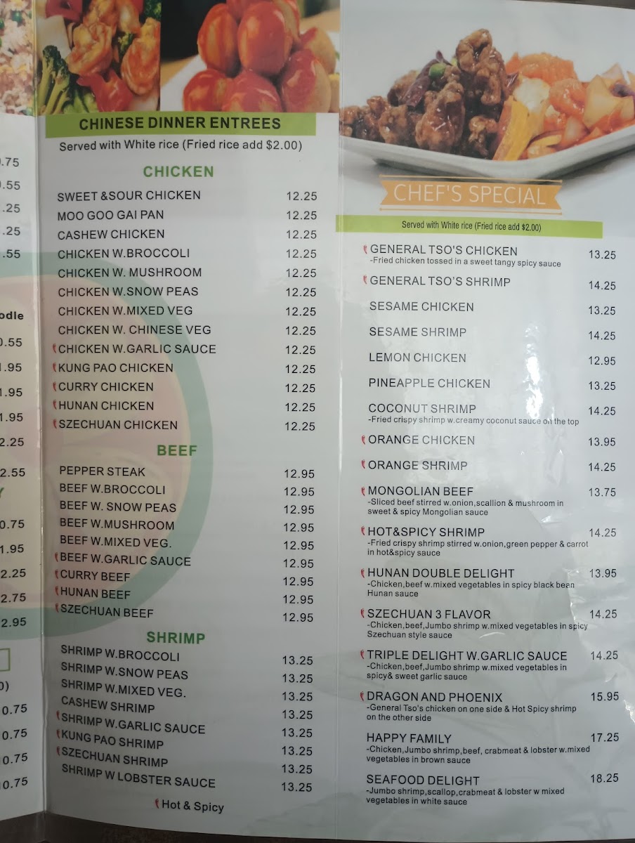Highlights include the Chicken Lo Mein, praised as the best noodles around, and the Steamed Shumai, which promises to tantalize your taste buds. The Happy Family dish, loaded with fresh shrimp and succulent lobster, is a standout, alongside the Singapore Mei Fun, which captures the essence of classic Asian fare. Many patrons appreciate the swift, friendly service and the refreshing plum wine that adds a delightful kick to your meal.